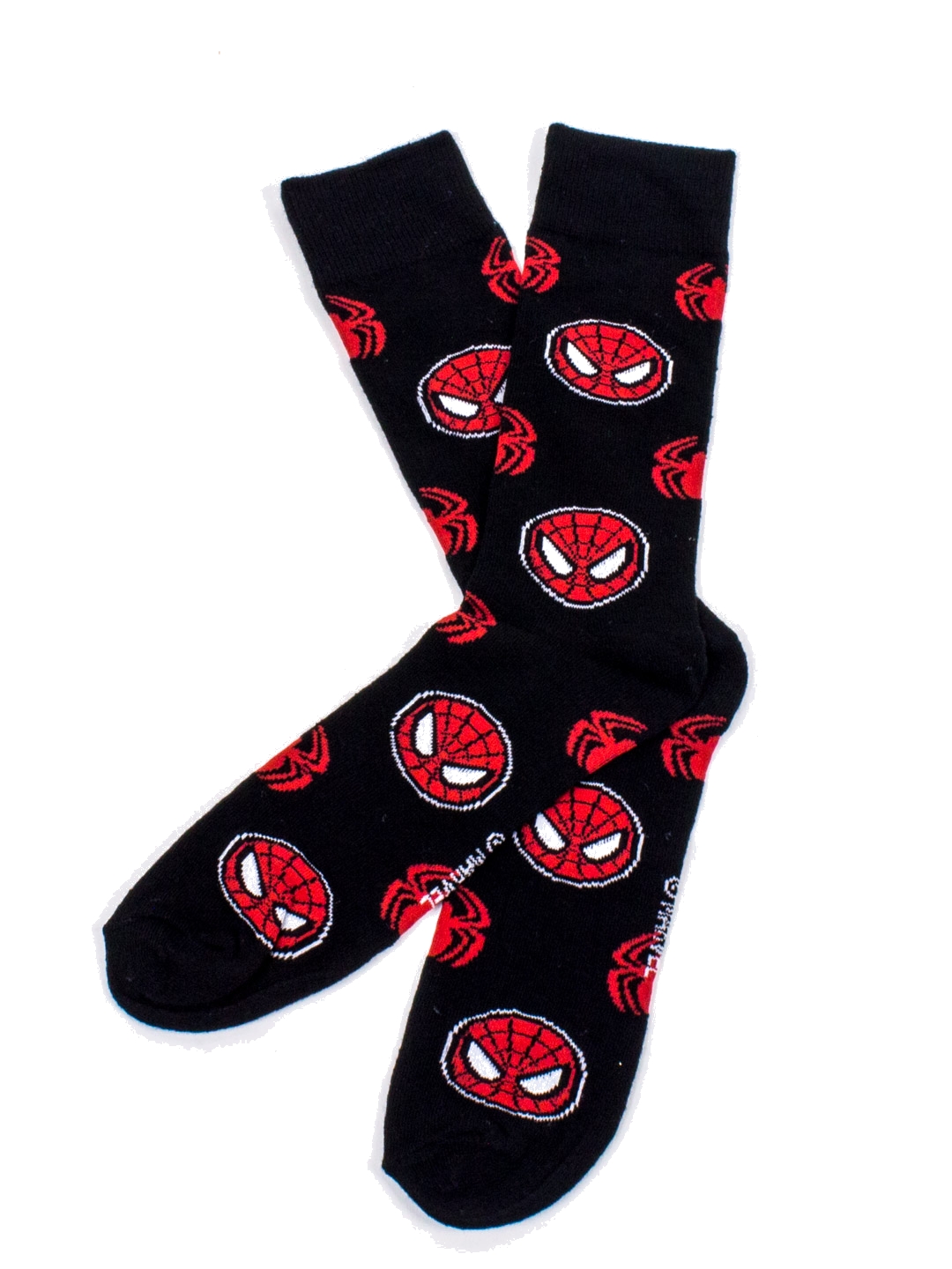 Hey it's Spider-Man, your friendly neighborhood, on a pair of amazing black socks. - Officially licensed Marvel merchandise - 70% Cotton, 30% Polyester - Imported