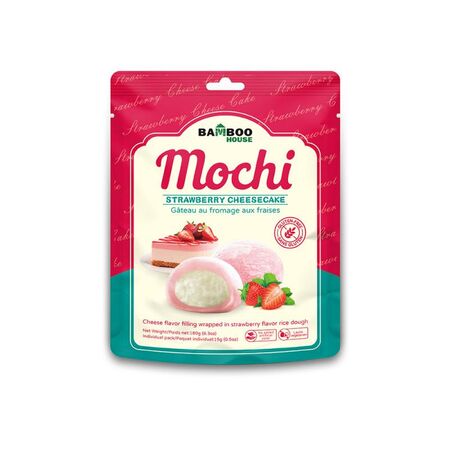 Enjoy Mochi filled with rich strawberry cheesecake paste, offering a sweet and fluffy taste experience that combines the traditional Mochi texture with creamy cheesecake flavor and fresh strawberry notes.