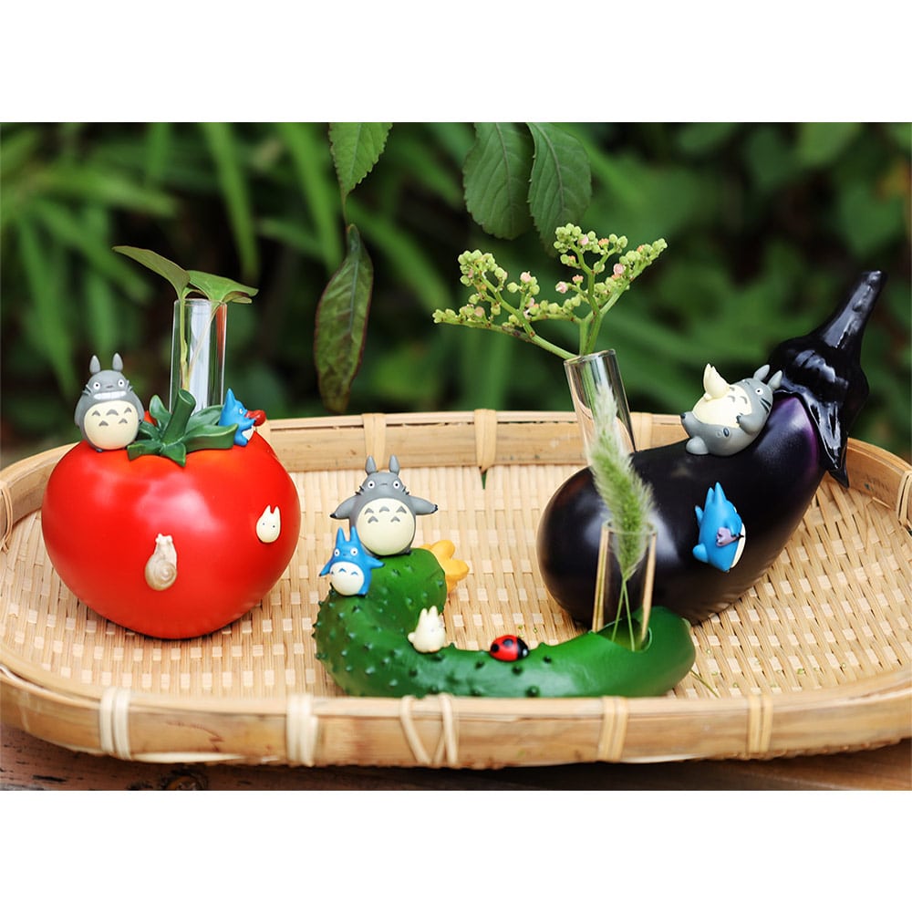 The My Neighbour Totoro Eggplant Vase brings the magical world of Totoro to your home. Totoro and his friends are playfully sliding on an eggplant, now turned into a charming vase. Perfect for adding a pop of color to your room or windowsill, it can hold a small flower and brighten up any space. It also makes a perfect gift for someone special.
