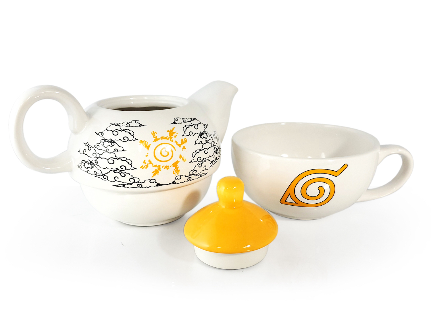 This Naruto Tea For One tea set is the ideal gift for any fan of the popular Japanese anime. Designed with attention to detail and manufactured with high-quality materials, this compact set includes a teapot with a capacity of 473ml and a matching cup with a capacity of 325ml that fits perfectly under the teapot, saving space and offering a stylish look. The impeccable design guarantees an excellent finish and long-lasting quality. Give this unique tea set to a Naruto fan and create unforgettable moments of relaxation while enjoying their favourite beverage in style. It's perfect for one person and makes a unique addition to any Naruto collection.
