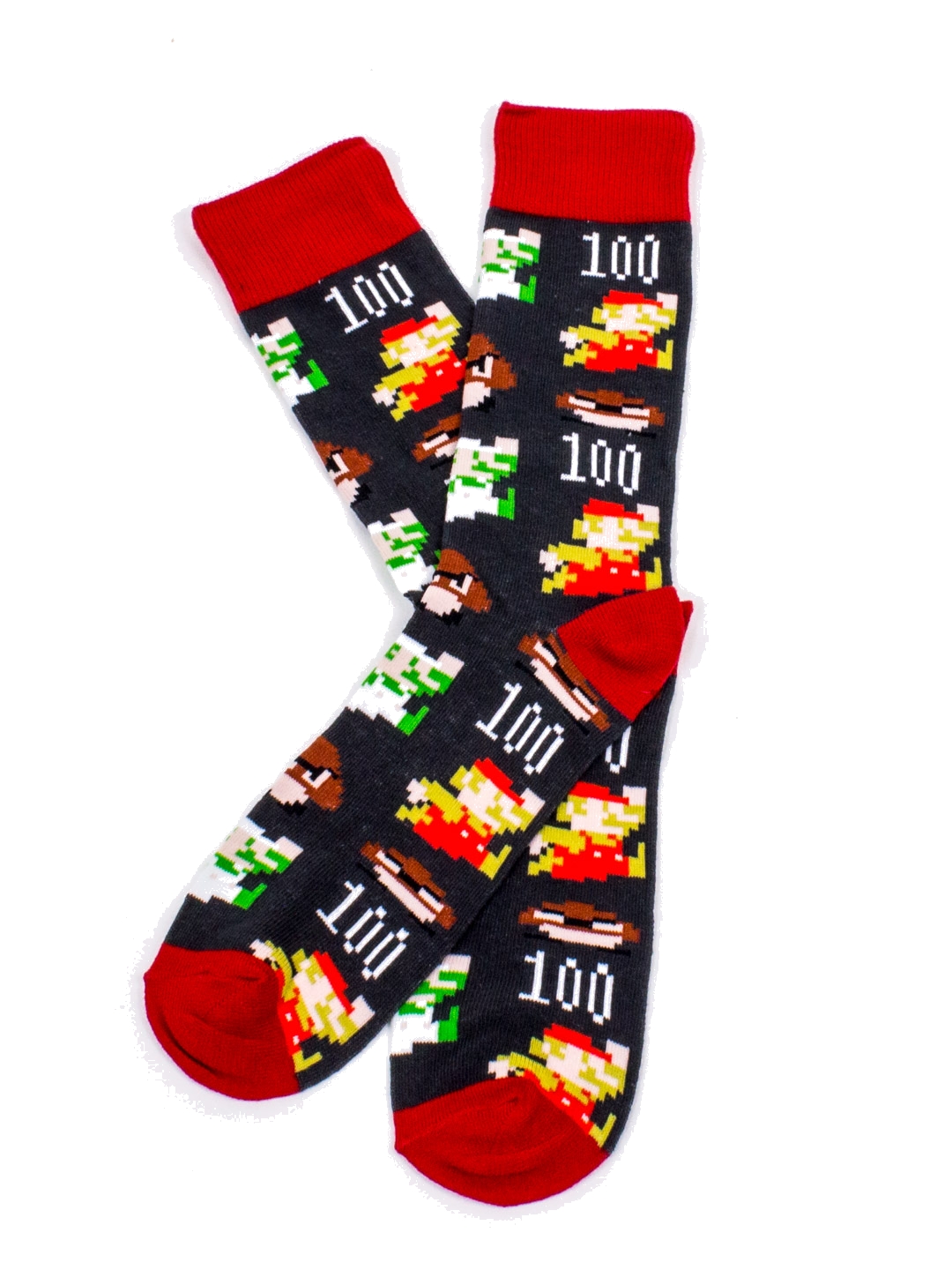 Every 90's fan will love this retro pair of socks featuring our favourite characters from Super Mario. - Officially licensed Nintendo merchandise - 75% Polyster, 25% Cotton - Imported