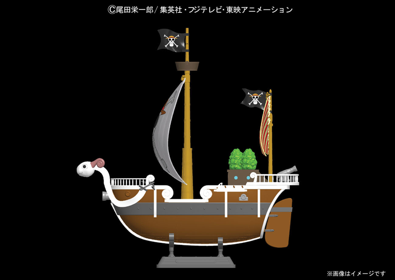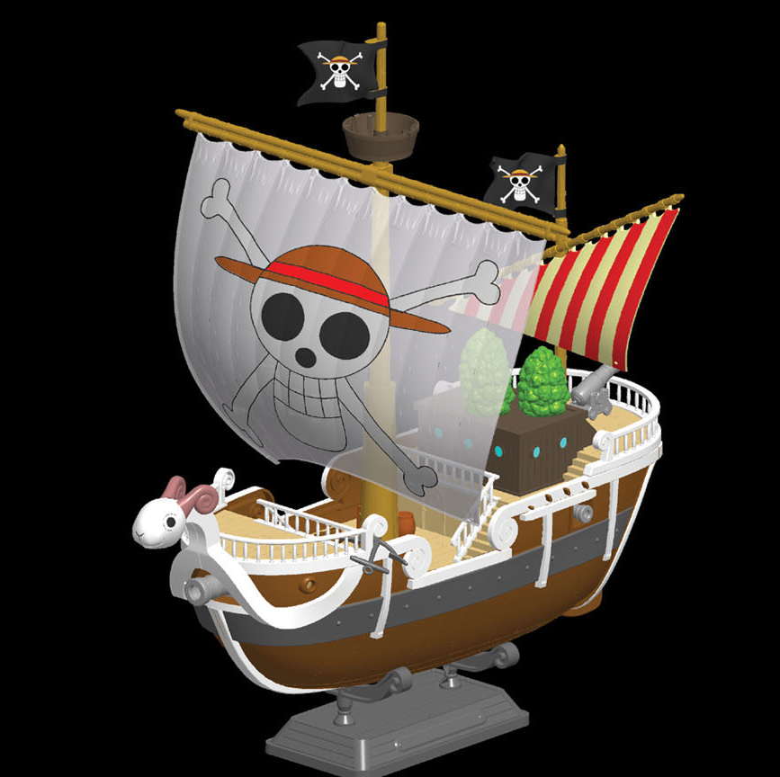 Bring the Going Merry, the first ship of Monkey D. Luffy’s Straw Hat Pirates, to life with this Bandai plastic assembly model kit. The set includes nylon rope for the anchor, a display stand, a large cannon on deck, barrels, crates, and more, providing a complete modeling experience. The kit comes molded in dark brown, tan, white, cream, and gold, and the figures are unpainted. Once assembled, the model measures 28 cm (about 11 inches) long, making it a perfect collectible for One Piece fans who want to display the iconic ship in full detail.