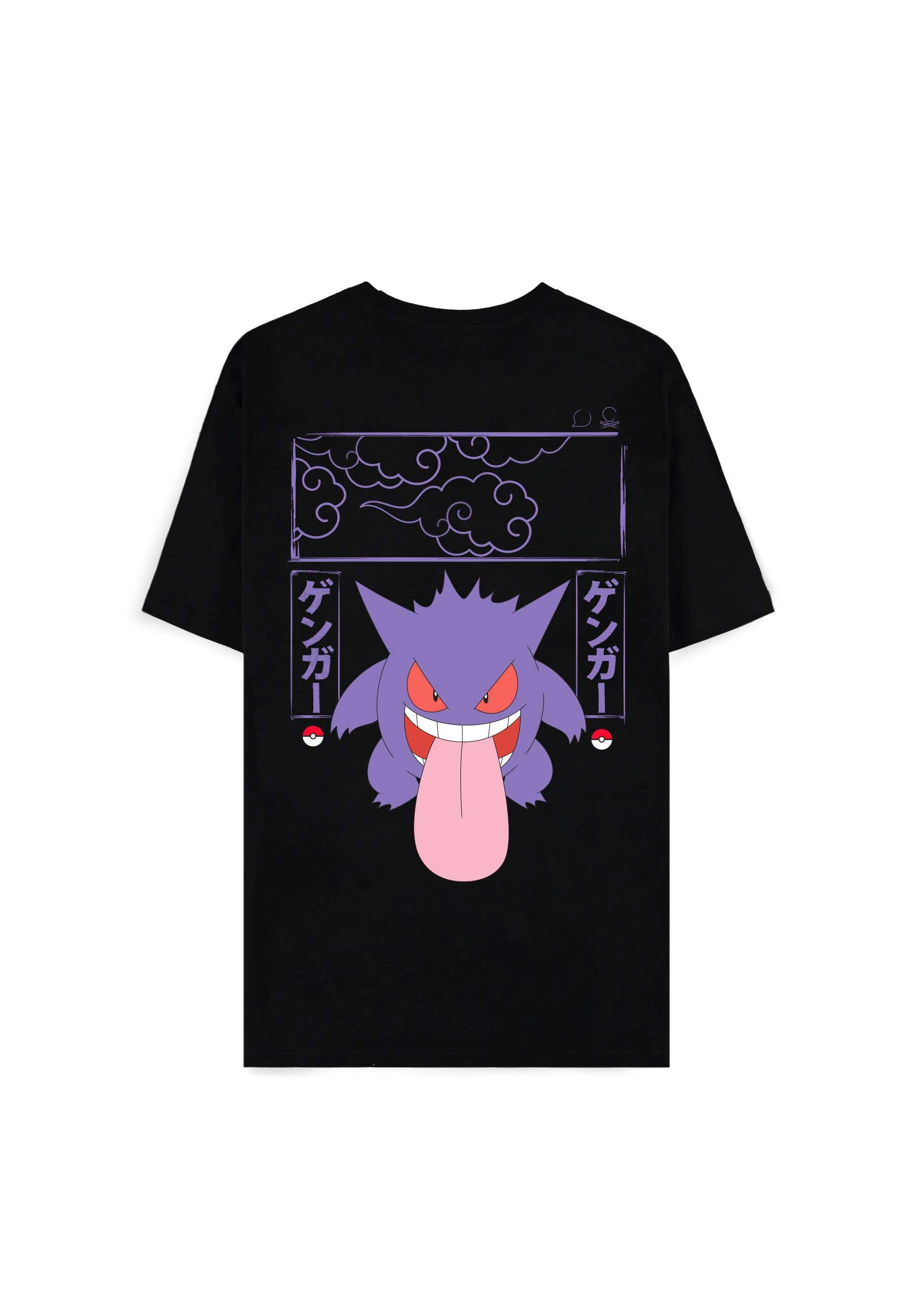 The Pokemon Back Print T-Shirt is officially licensed Pokémon merchandise, designed to provide style, comfort, and collector appeal for fans. This black short-sleeved tee features a classic Poké Ball motif on the chest and a striking large purple block print of Gengar on the back, delivering bold visual identity and statement style. Perfect for everyday wear or collectible outfits, this T-shirt combines modern design with the authenticity of the Pokémon universe.