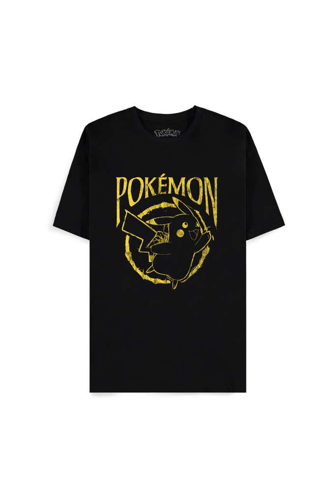 Pokemon Pikachu Thunderstrike Short Sleeved Shirt is officially licensed Pokémon merchandise, designed to capture the high-voltage energy and timeless appeal of Pikachu through a bold, distressed front graphic. Pikachu is framed by a striking yellow energy ring, paired with a vintage-style logo, delivering a more grown-up, statement-driven look. The contrast between the black base and vivid yellow detailing creates strong visual impact, making it an excellent choice for street-focused collections and fans of all ages. As the most iconic character in the Pokémon universe, Pikachu continues to resonate across generations, and this T-shirt channels that enduring love through graphic-led design that works equally well on the street and as part of a curated collection.
