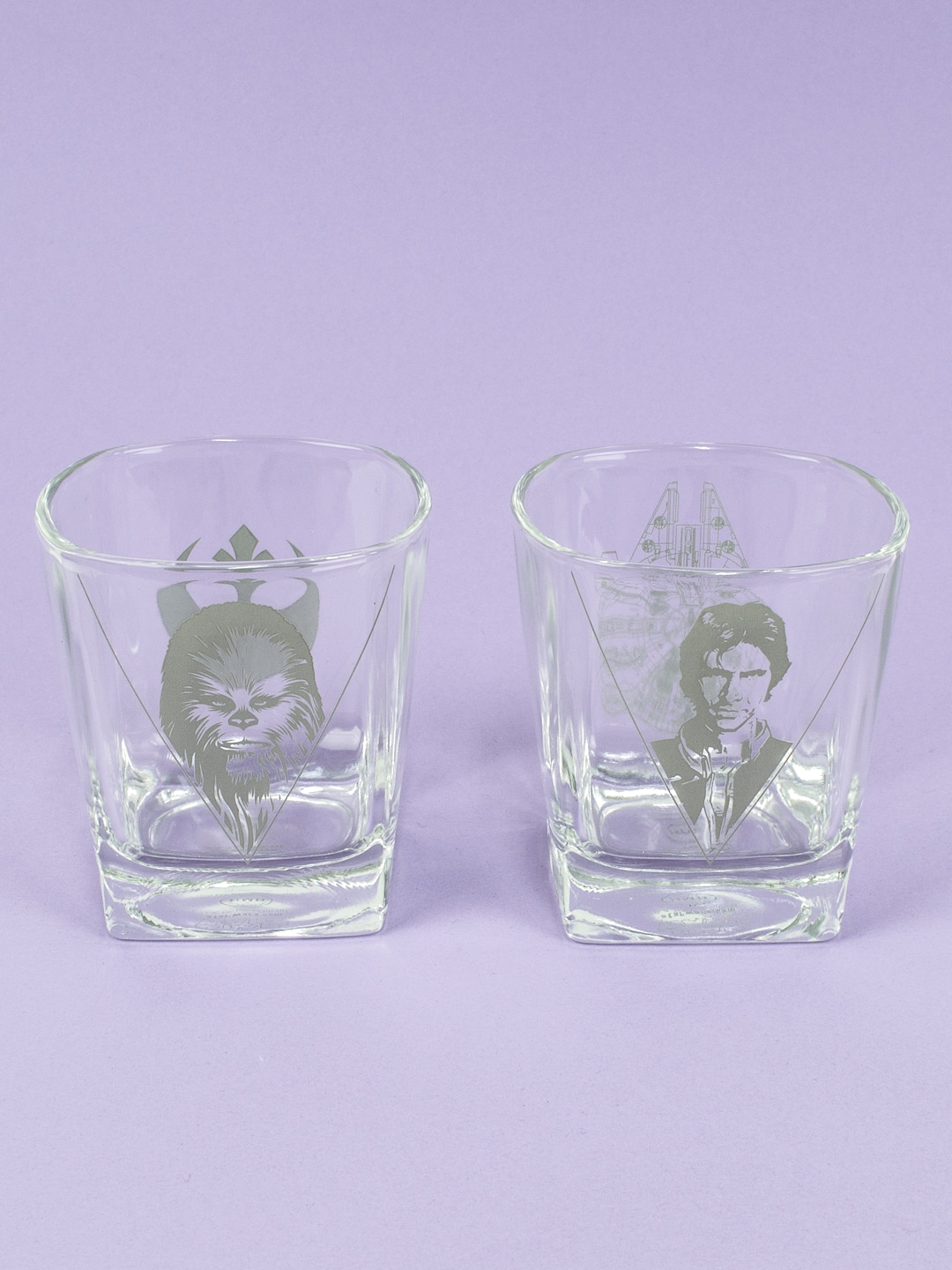 This iconic set of two glasses featuring two old best friends, Han Solo & Chewbacca, is perfect for every Star Wars fan. - Officially licensed Star Wars merchandise - Imported