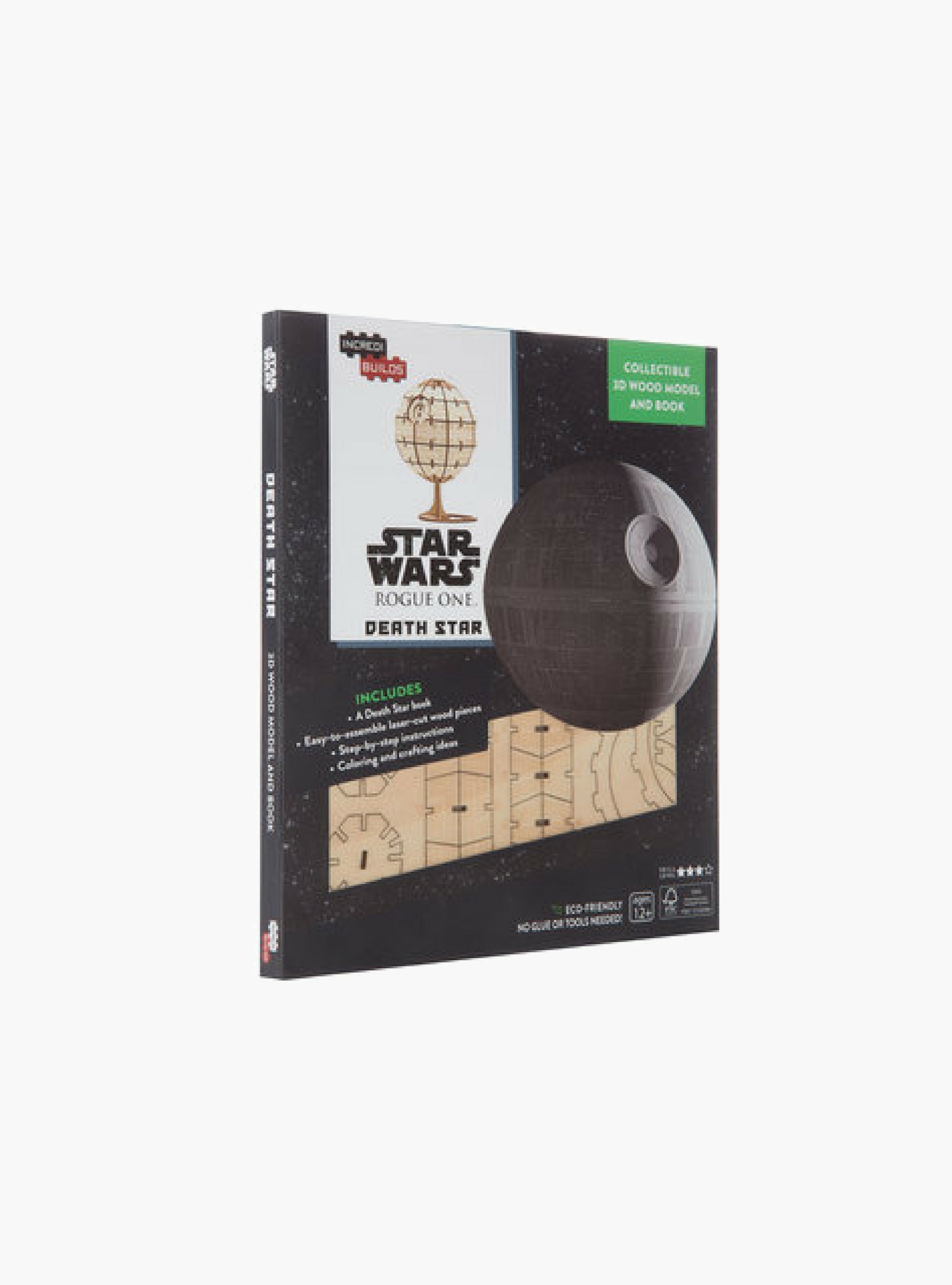 Find the power of the ultimate weapon, Death Star, with this 3D Wood Model. - Officially licensed Star Wars merchandise - Includes " A Death Star Book", Step- By-Step instructions, Coloring and crafting ideas. - Imported