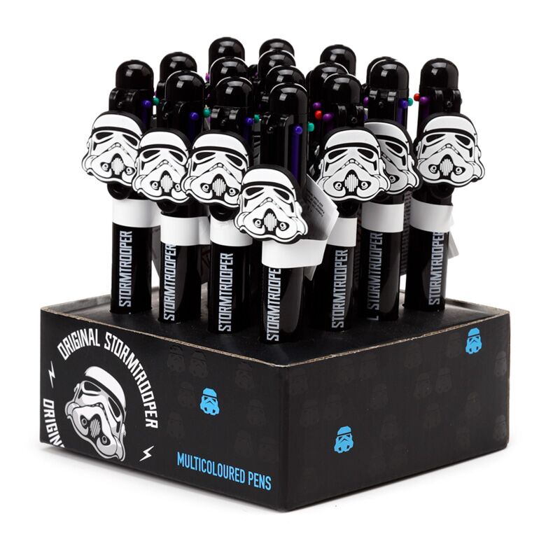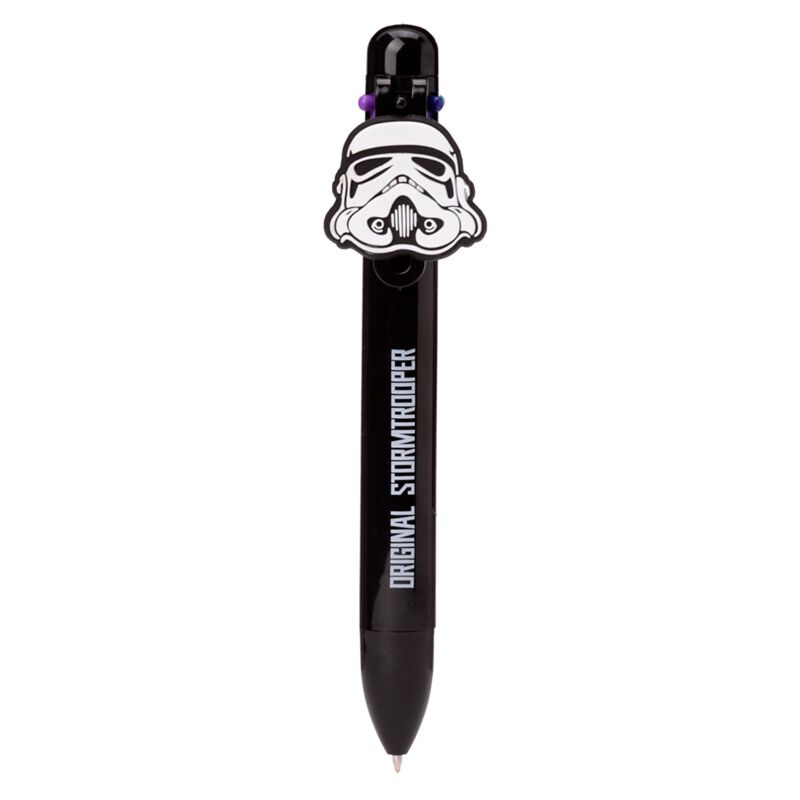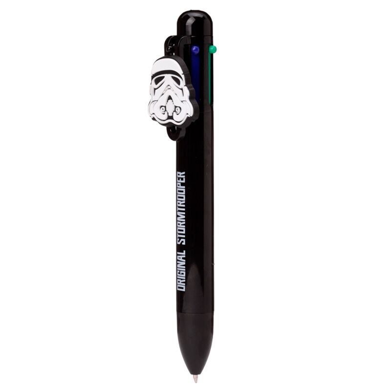 Get ready to conquer the galaxy with this fantastic The Original Stormtrooper Multi Colour Pen! Featuring six different ink colours – blue, red, orange, green, purple, and black – this pen is perfect for all your writing needs, from notes to drawings. Made from durable Plastic (ABS) and PVC, it's sturdy and ready for any mission. Its unique charm adds a distinct Star Wars touch, making it an essential accessory for every Star Wars enthusiast!