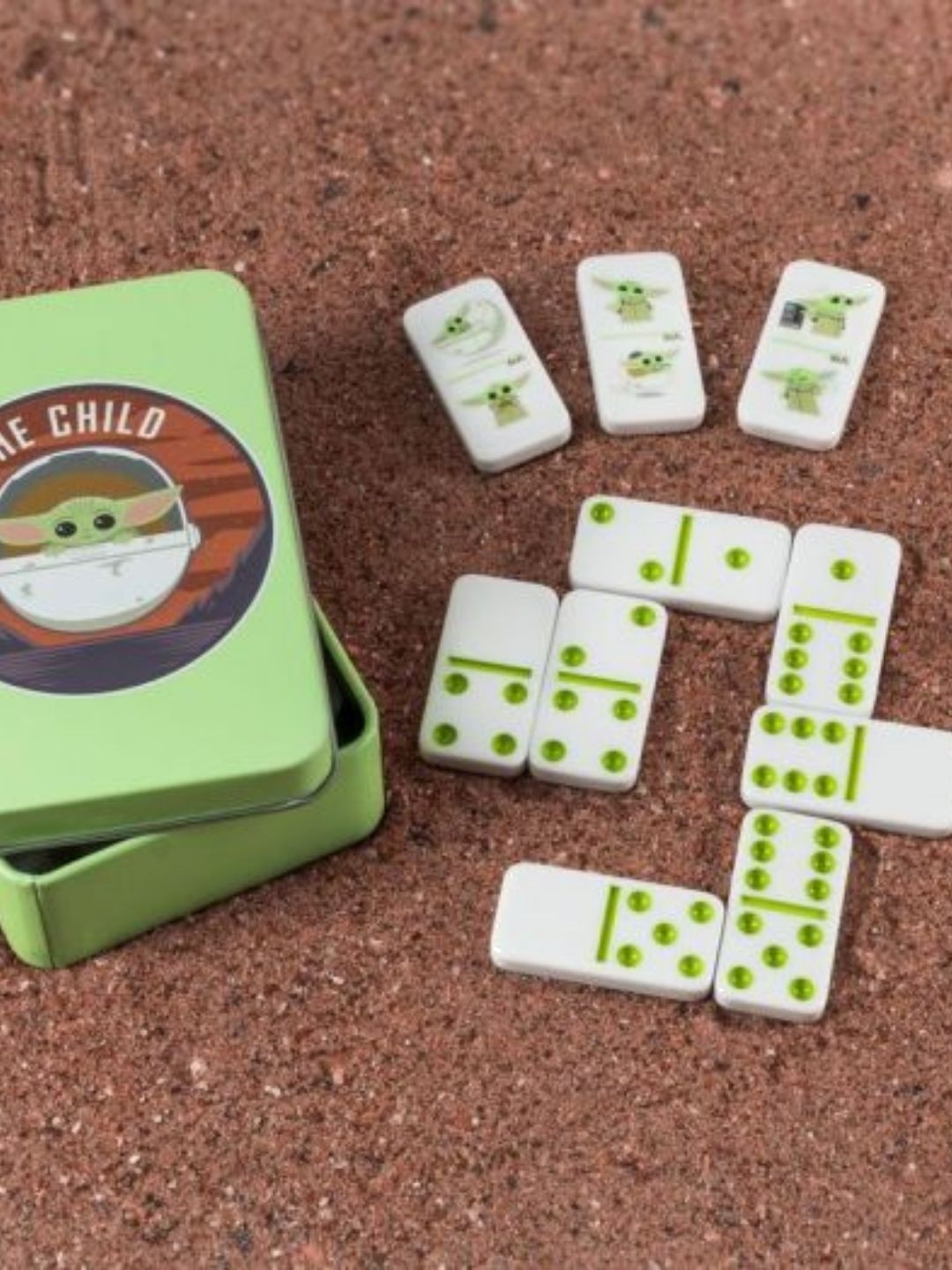 - Set of 28 plastic dominoes featuring The Child (Baby Yoda)