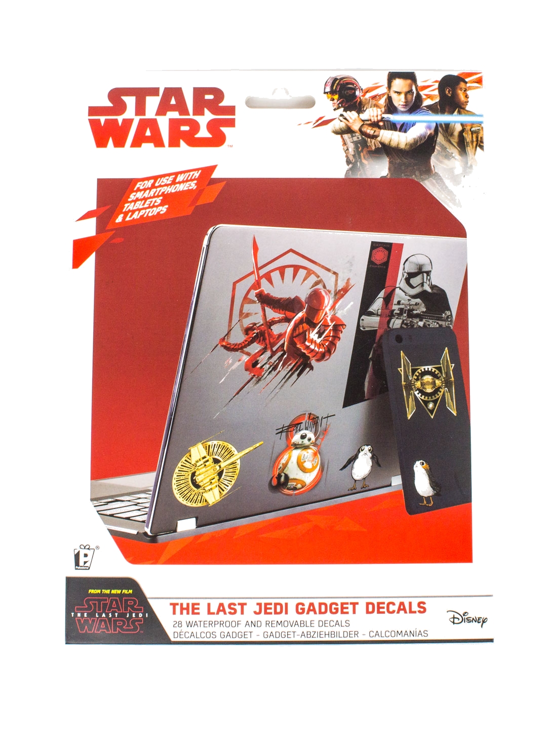 The perfect gift for any Star Wars fan, this collection of official Star Wars: The Last Jedi gadget stickers allows you to turn anything and everything into Star Wars memorabilia instantly! - Officially licensed Star Wars merchandise - 28 waterproof & removable decals - Imported