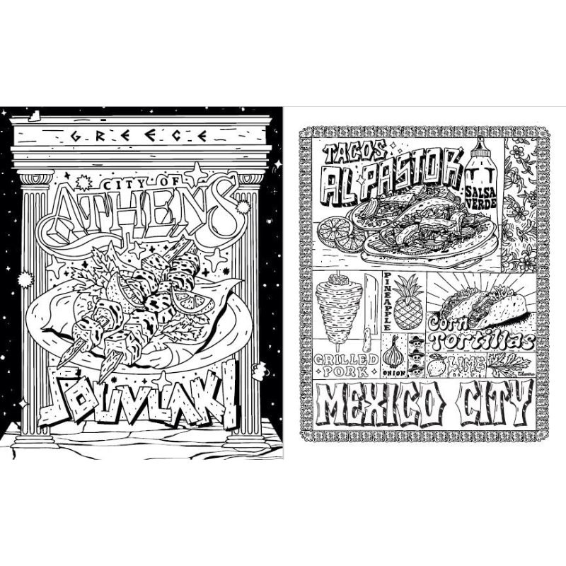 The Street Food Coloring Book is a unique experience that blends creativity with the magic of flavors. Discover over 50 pages of intricate illustrations featuring iconic street foods from around the globe: from fish and chips in London, döner kebap in Berlin, New York City pizza slices, to hotteok in Seoul and tunnbrödsrulle in Stockholm. This book is a vibrant culinary adventure, transporting you to the bustling streets of some of the world’s most delicious destinations. With tacos, noodles, hot dogs, and falafel, each page brings memories to life, sparks dreams of future trips, or inspires new home-cooked recipes.