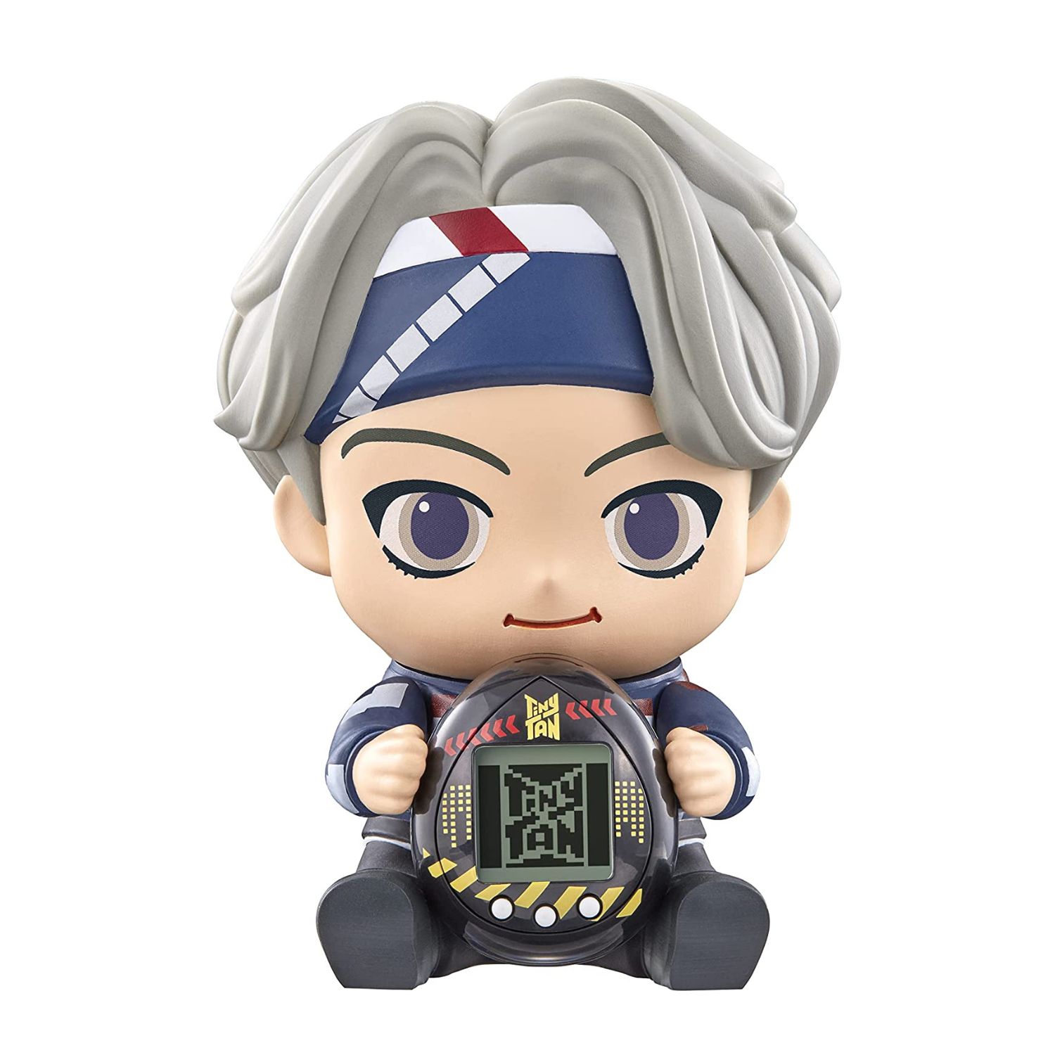 BTS TinyTAN Hugmy Tamagotchi features a soft vinyl collectible V figure that adorably "hugs" and displays your TinyTAN Tamagotchi Nano device. The V figure stands approximately 4-inches tall and comes with a matching black Tamagotchi shell design inspired by "MIC Drop." It's the perfect way to display your fandom! Interact with the "Magic Door" and one of the seven TinyTAN characters will come into your Tamagotchi device! Will it be RM, Jin, Suga, J-hope, Jimin, V, or Jungkook? You can become close friends with the TinyTAN characters and spend time together every day! Their outfits will change depending on how you interact with them! Feed them their favorite foods, dance, and more! Take care of your relationship or your TinyTAN character will go back through the "Magic Door." Travel everywhere with your TinyTAN friend!