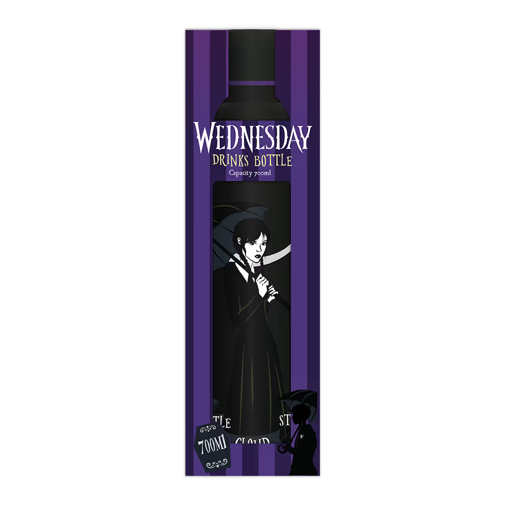 Stay hydrated with a gothic twist using the Wednesday 700ml Stainless Steel Bottle! Inspired by the mysterious style of Wednesday Addams, this bottle offers a perfect mix of practicality and personality, ideal for school, work, or daily outings. Crafted from durable stainless steel, it keeps your drink cool while showcasing your love for all things eerie and quirky.