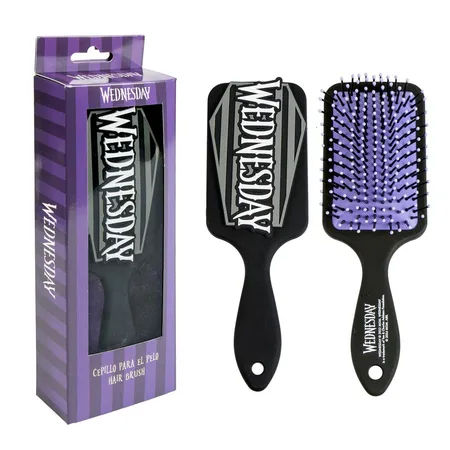 The Cerda Wednesday Hairbrush is the ultimate styling accessory for fans of the famous Addams Family. Designed by Cerda, this hairbrush combines style and practicality for a flawless result. With its sleek design and bristles, it's perfect for gently detangling and styling your hair. Its compact size makes it easy to carry in your handbag for a quick touch-up anytime during the day.